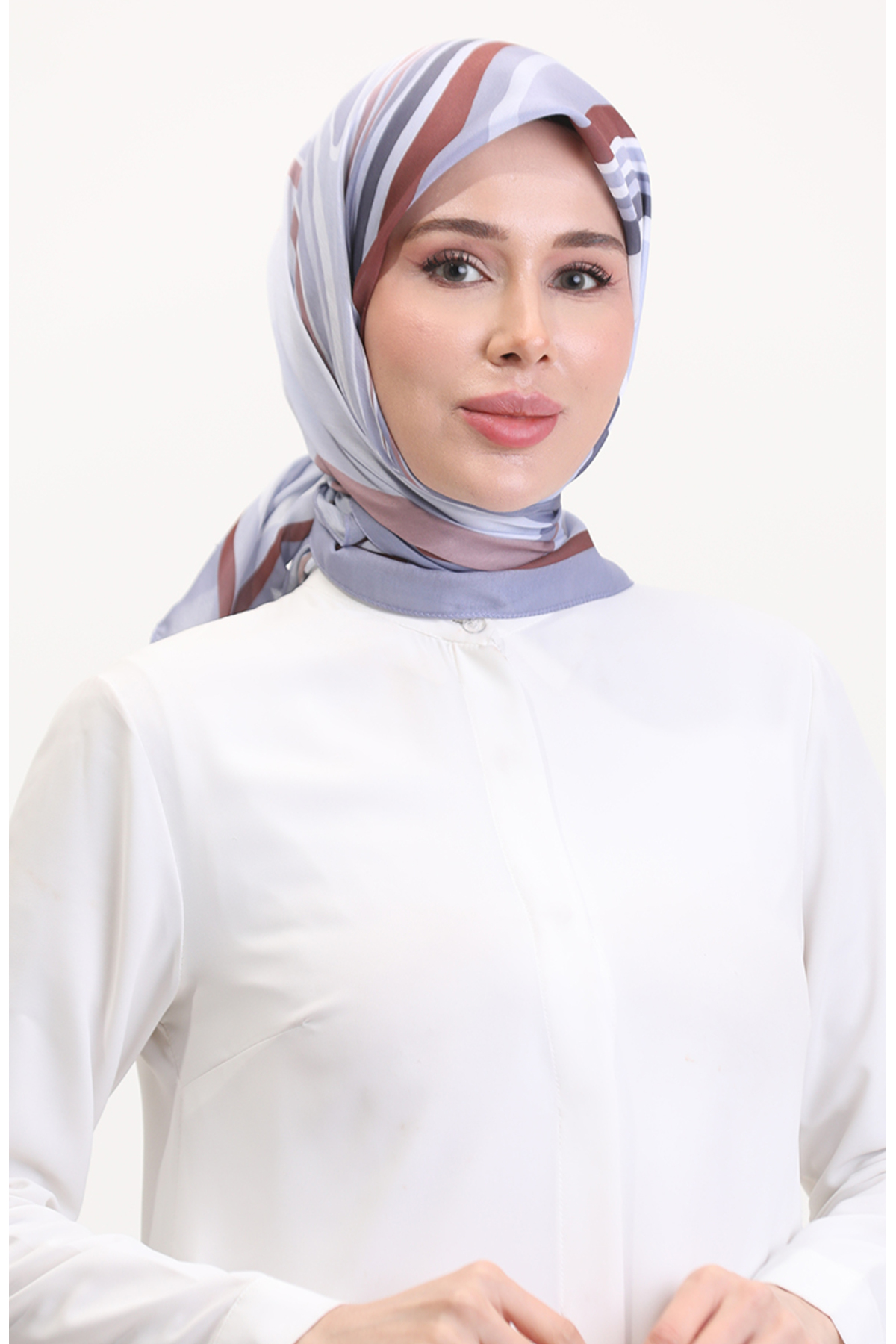 ميزات وشاح ناعم منقوش 70254-05 رمادي بني من sefamerve