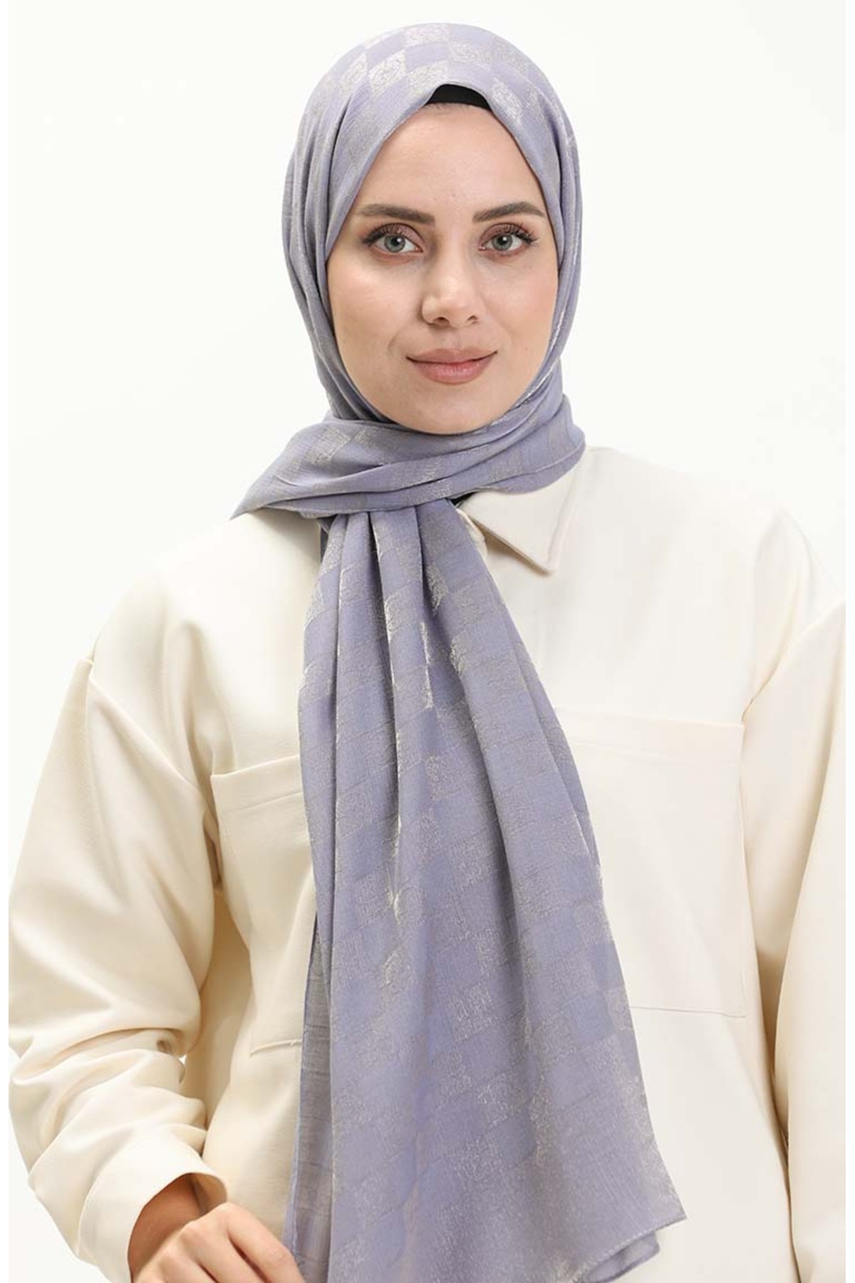 ميزات شال بنمط مربع 70224-11 أرجواني من sefamerve