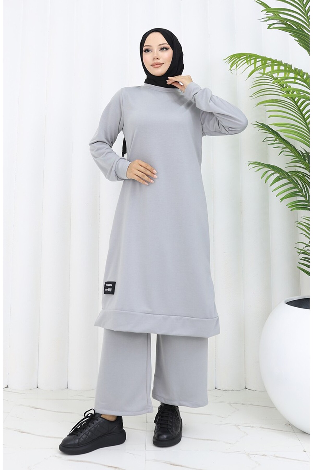 ميزات طقم مكون من قطعتين بنطلون تونيك بخيطين 0044-37 رمادي فضي من sefamerve
