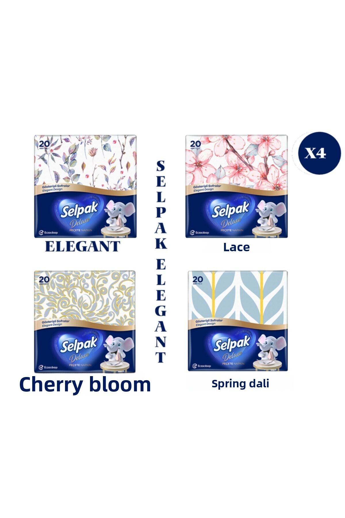 Selpak منديل منقوش بتصميم أنيق فاخر 4 عبوات