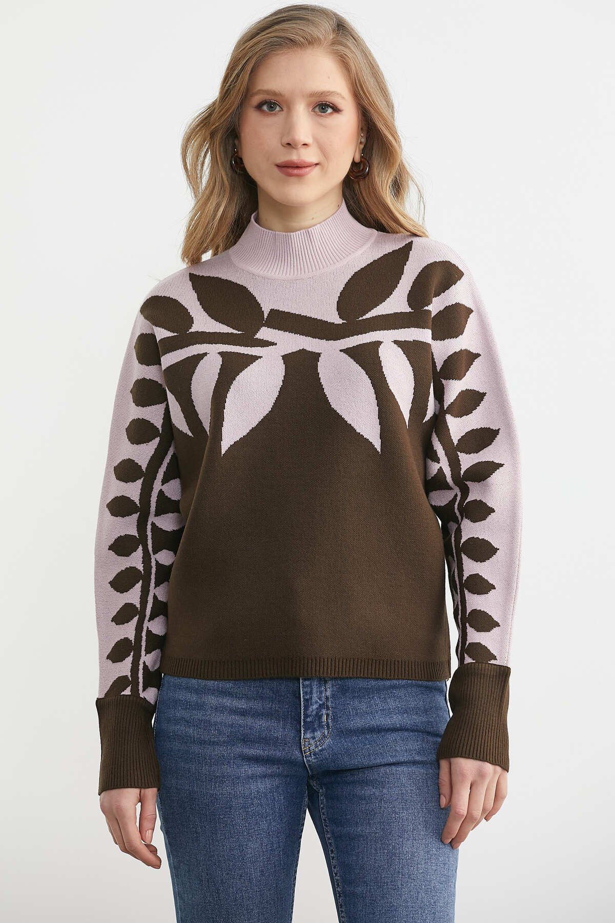 ميزات سترة تريكو منقوشة بأكمام على شكل أجنحة الخفاش - بني من Sementa