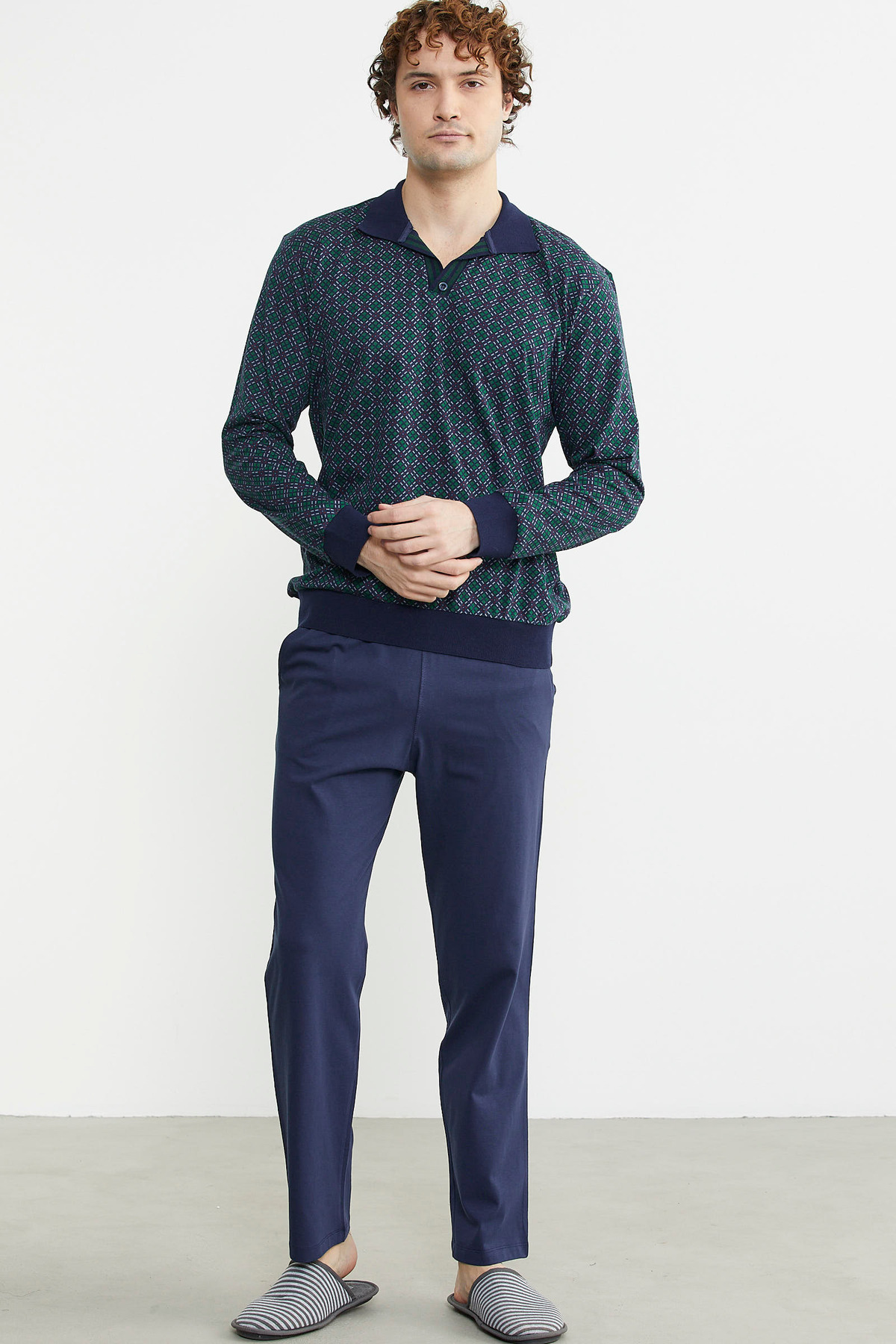 ميزات طقم بيجامة مريح منقوش باللون الأخضر من Sementa