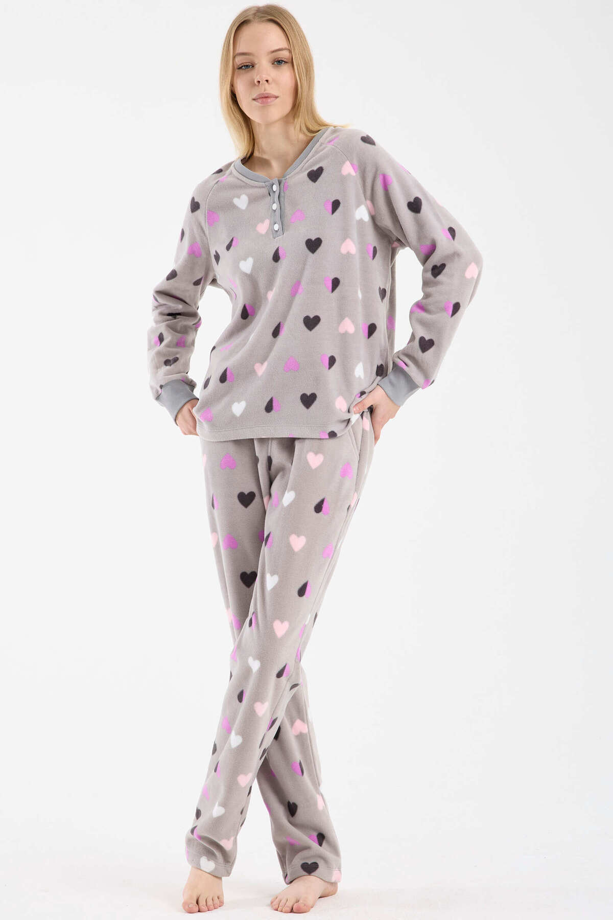 ميزات طقم بيجامة صوف بنقشة قلب - رمادي من Sementa