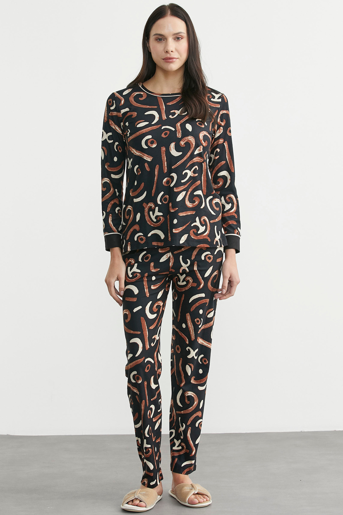 ميزات طقم بيجامة منقوشة ذات ملمس ناعم - أسود من Sementa