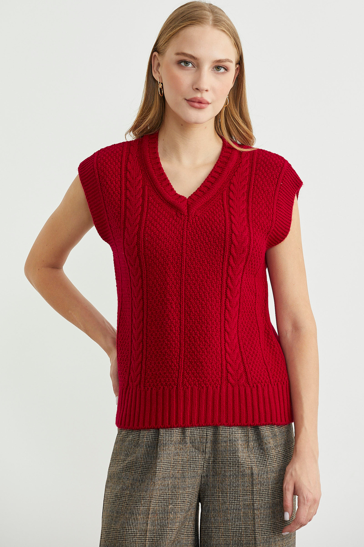 ميزات سترة صوفية برقبة على شكل حرف V - أحمر من Sementa