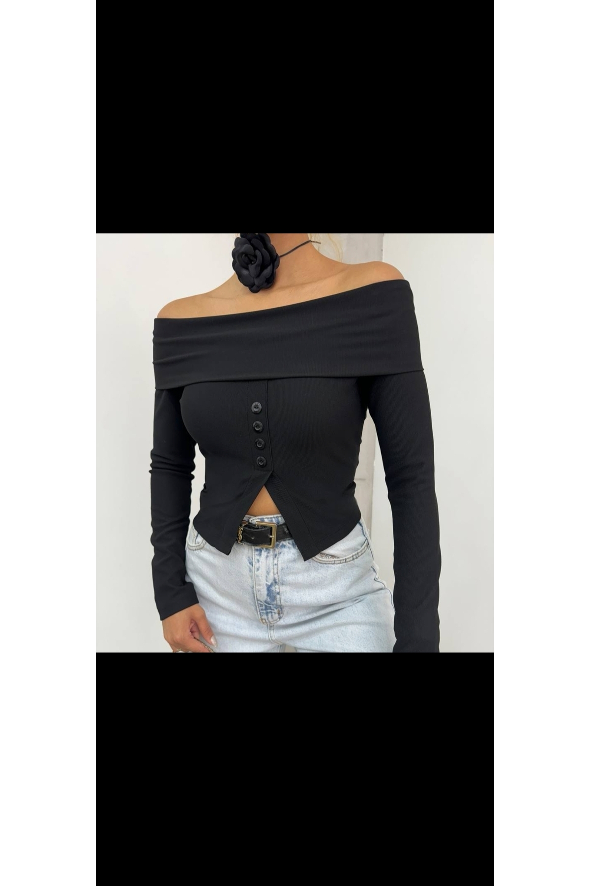 ميزات بلوزة قصيرة بأكمام طويلة مع أزرار من Serra