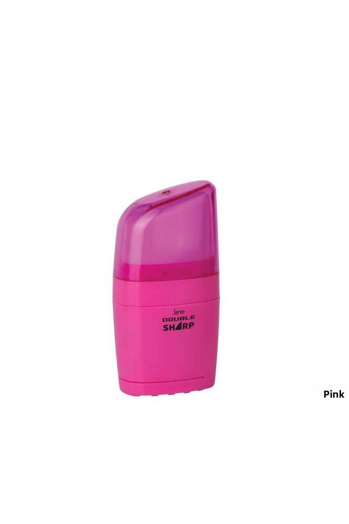 Serve مبراة أقلام مع ممحاة مزدوجة حادة باللون الوردي