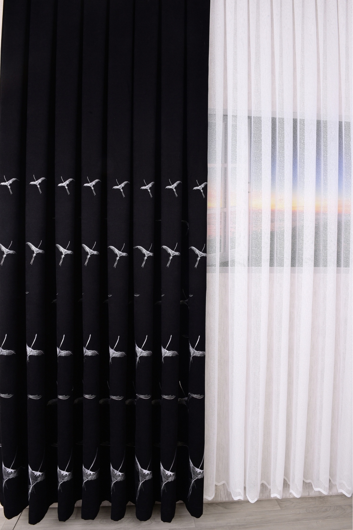 Setekshome ستارة خلفية مطرزة على شكل طائر العنقاء باللون الأسود مع رباط