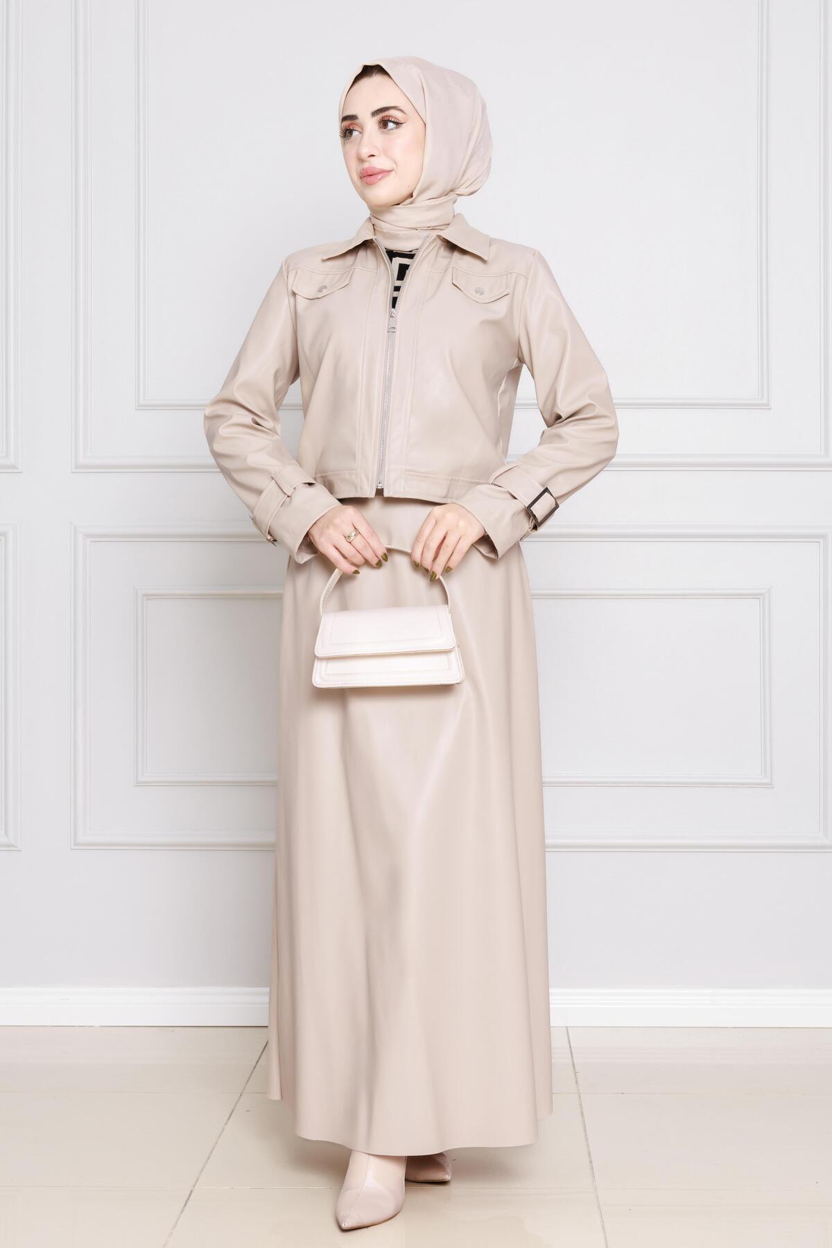 Sevitli بدلة جلدية باللون البيج مع سترة