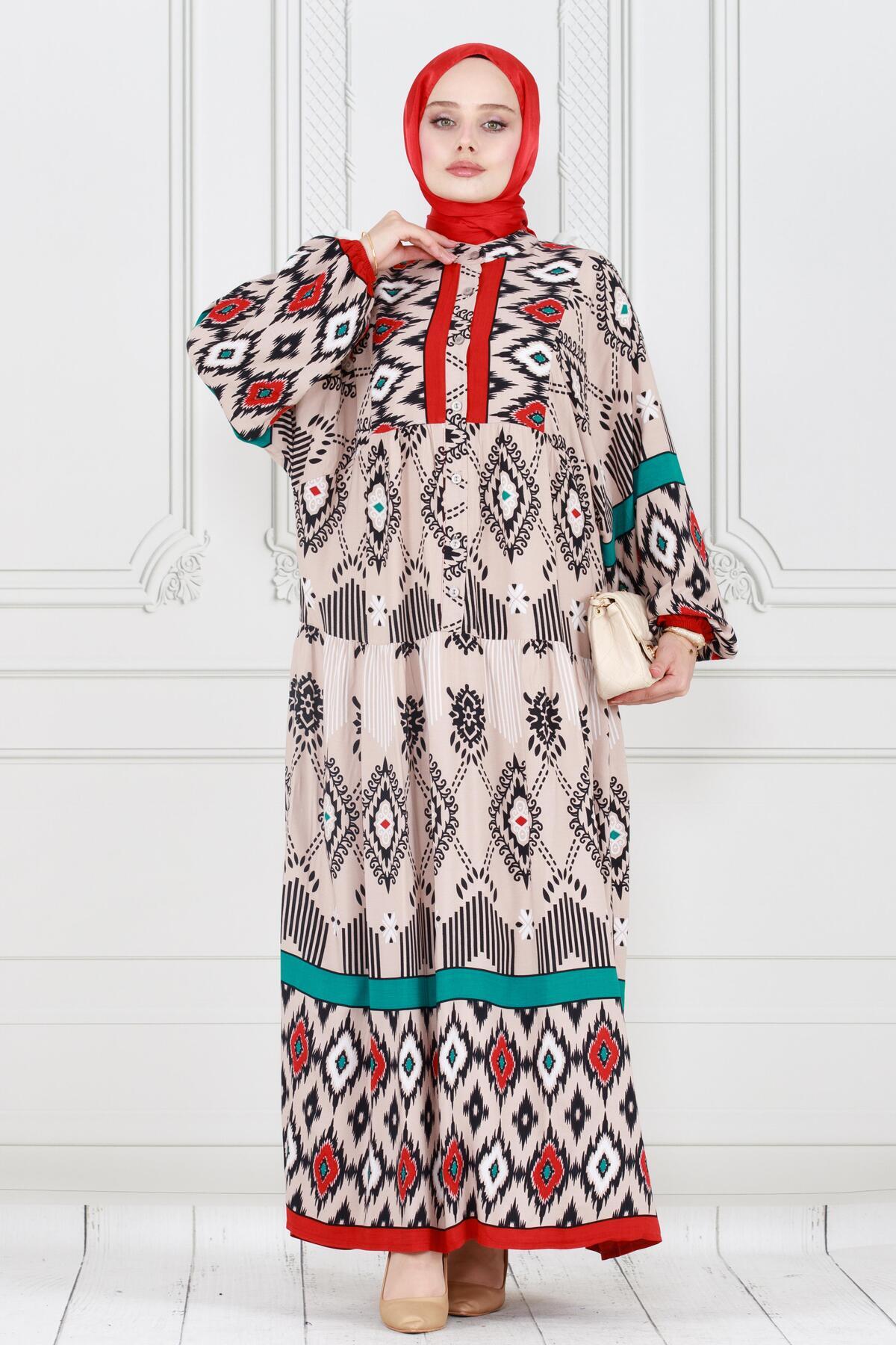 ميزات فستان بيج منقوش بنصف زر من Sevitli