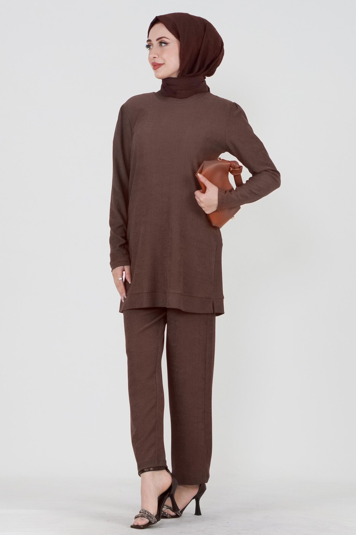 Sevitli طقم مزدوج مضلع برقبة دائرية - بني