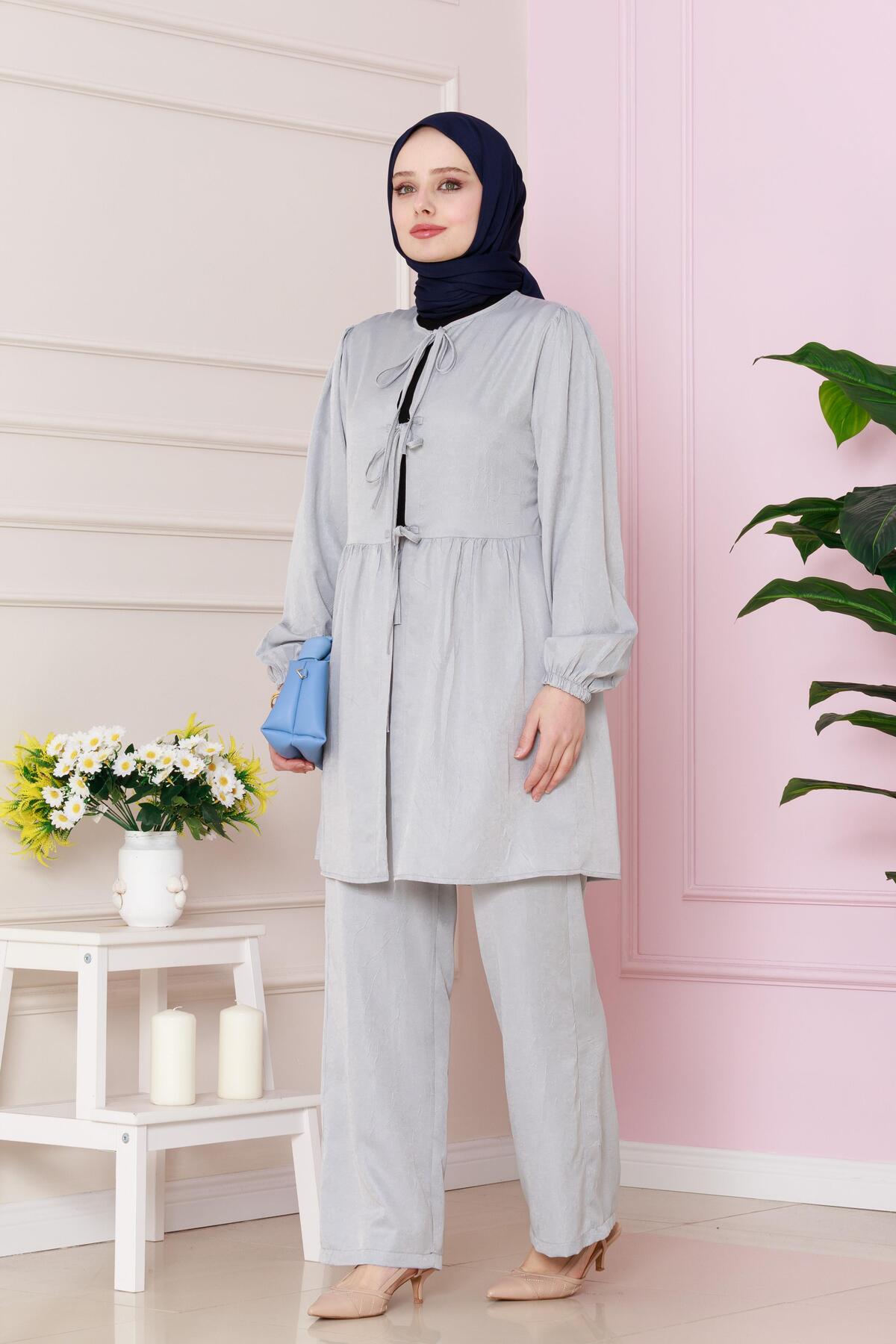 Sevitli طقم بنطلون رمادي برباط أمامي