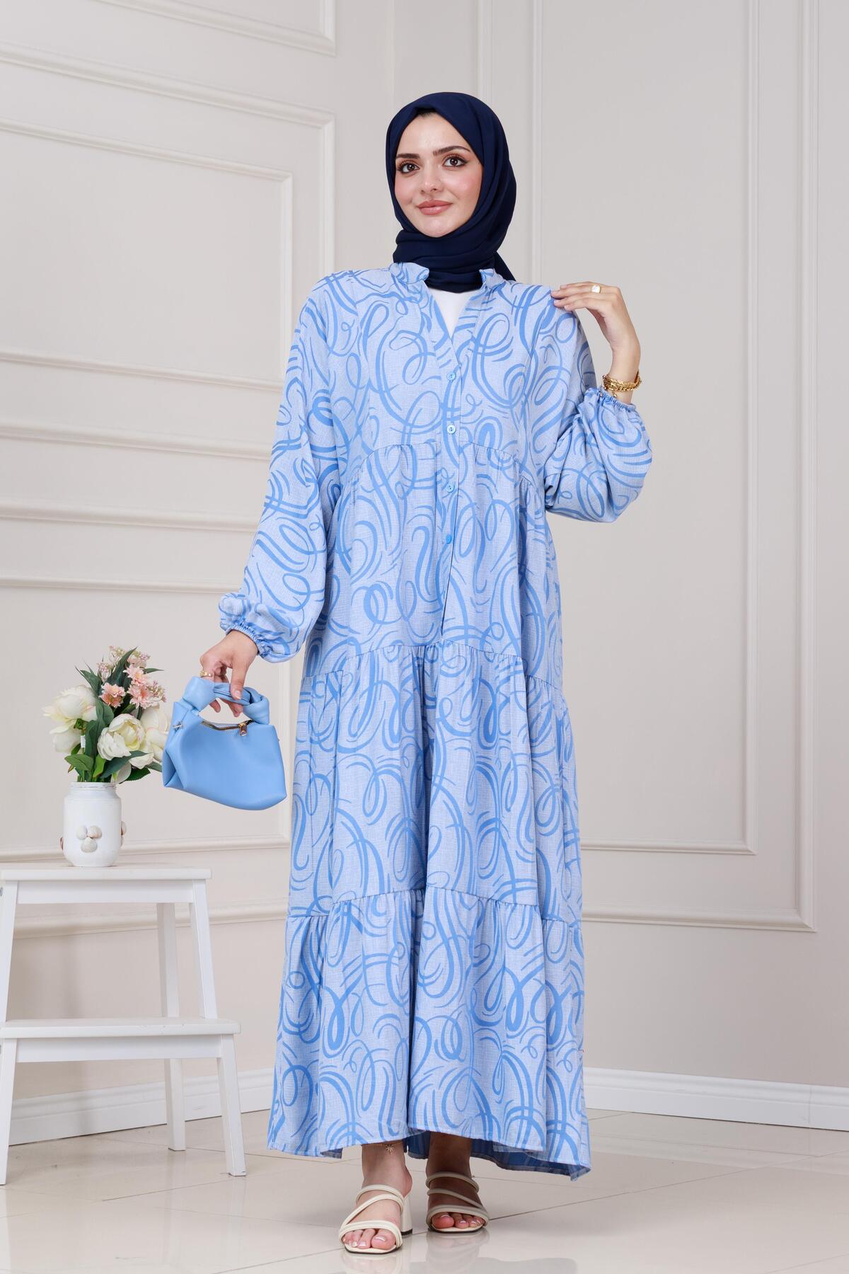 ميزات فستان رداء بنمط موجة - أزرق من Sevitli