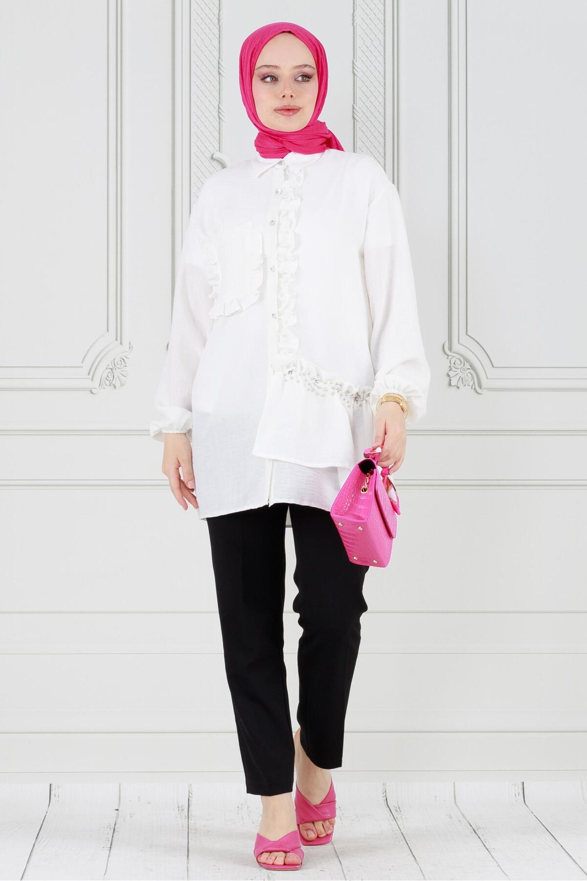 ميزات تونيك الأميرة الأبيض المكشكش من Sevitli