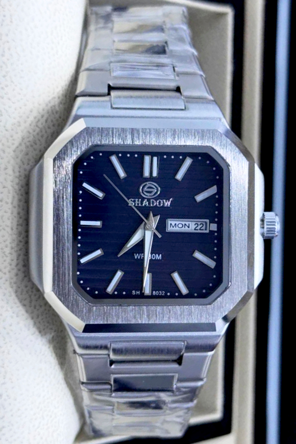 ميزات ساعة رجالية أنيقة - علبة مربعة مثمنة الأضلاع - وظيفة اليوم والتاريخ من SHADOW