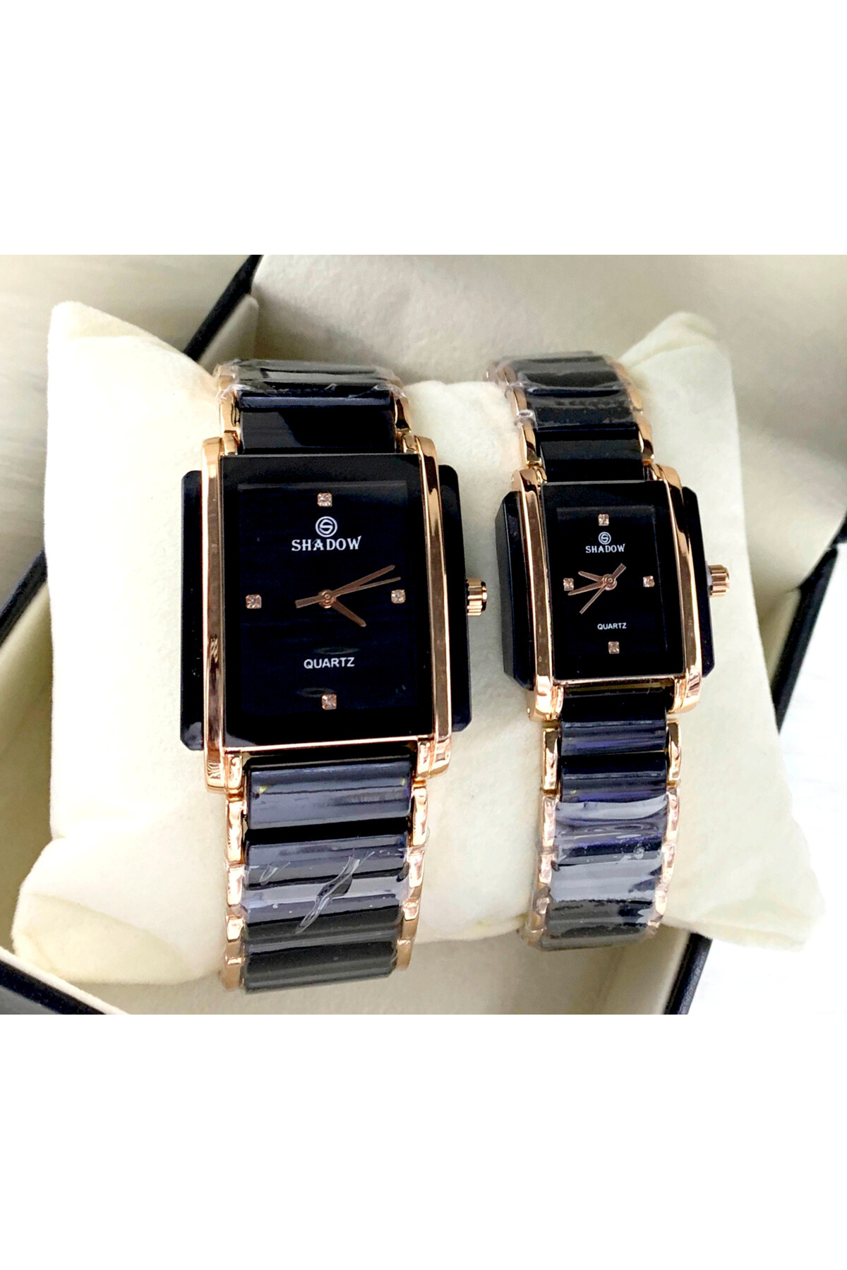 ميزات طقم ساعات فاخر للزوجين - تصميم مستطيل أنيق ثنائي اللون من SHADOW