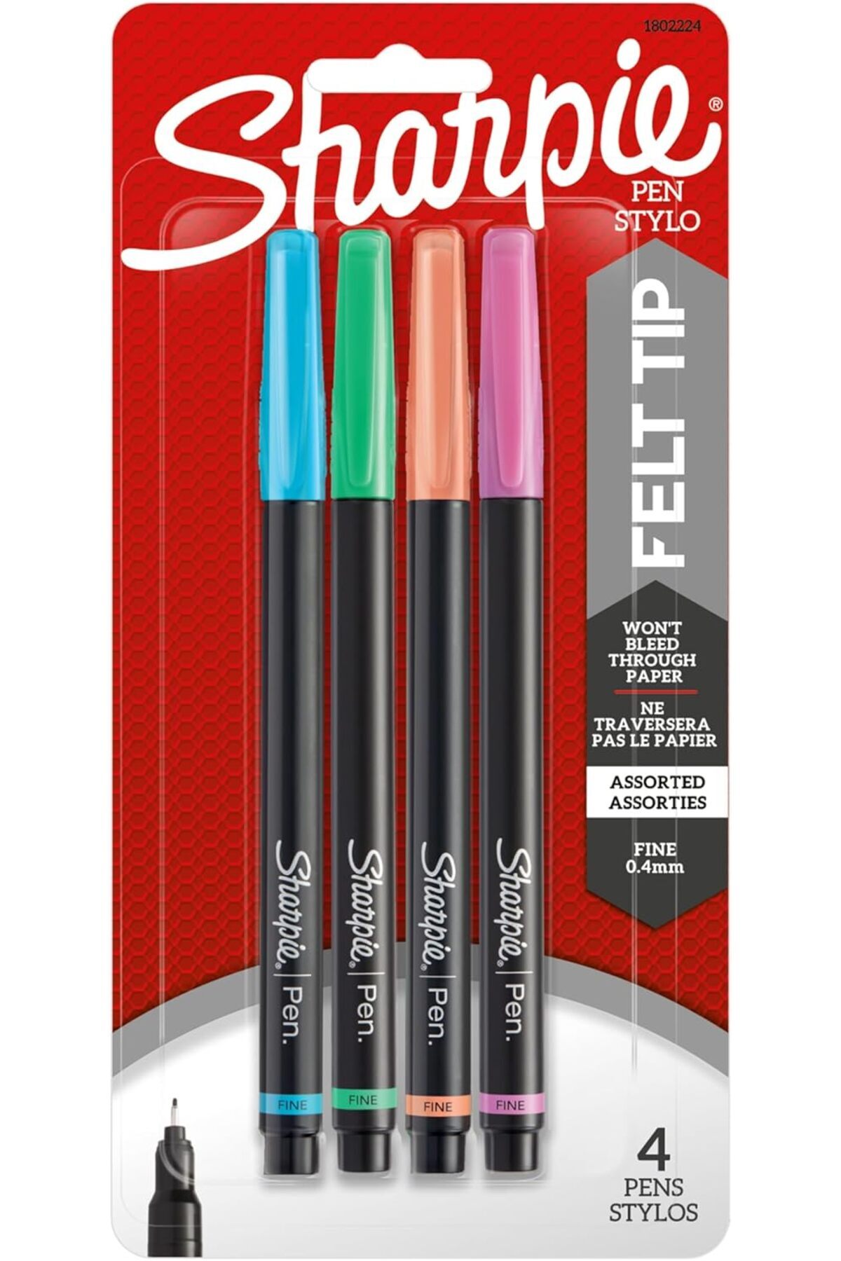 ميزات قلم ستايلو، ذو رأس رفيع، ألوان متنوعة، 4 قطع من Sharpie