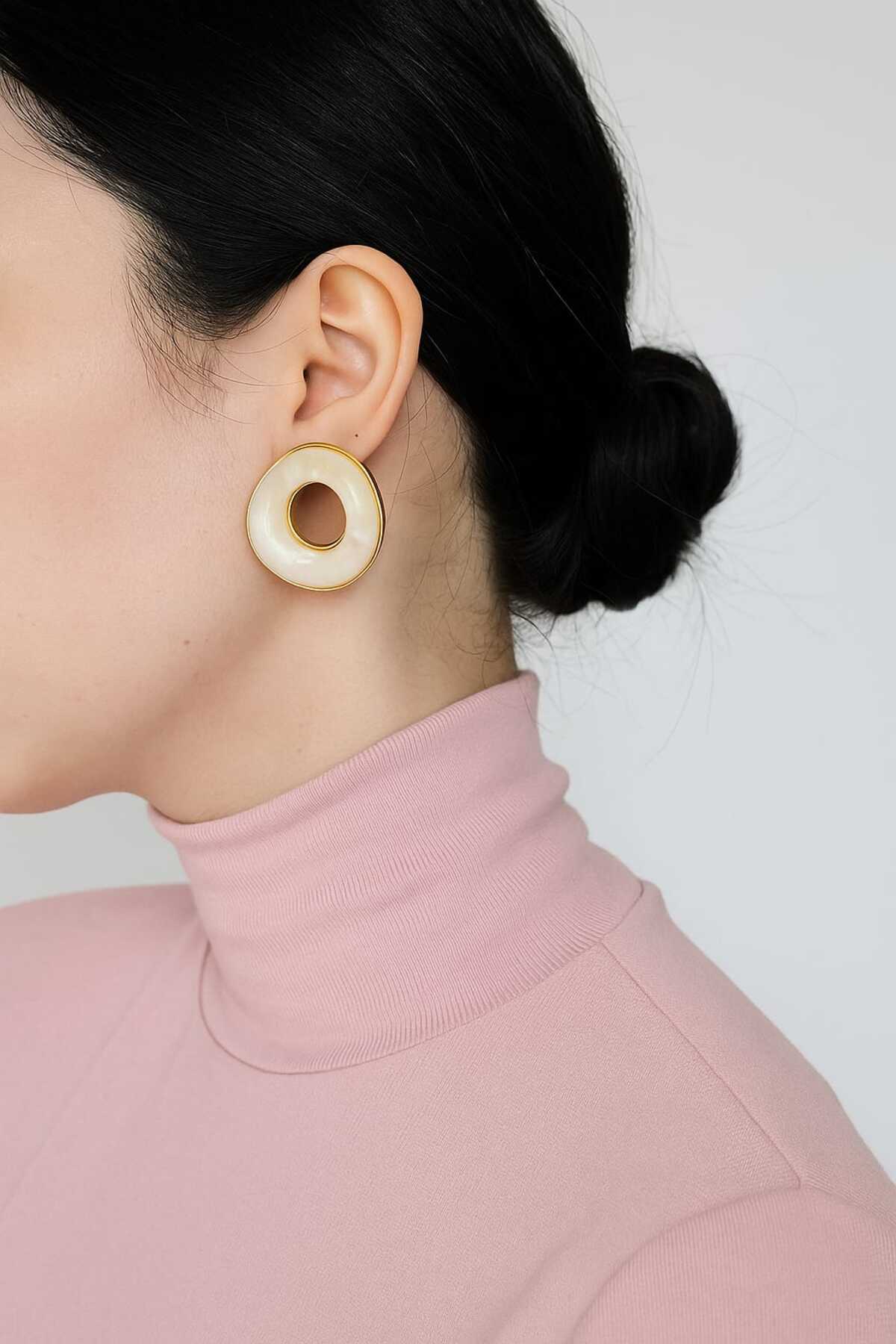 shop أقراط بإطار ذهبي ونقش رخامي
