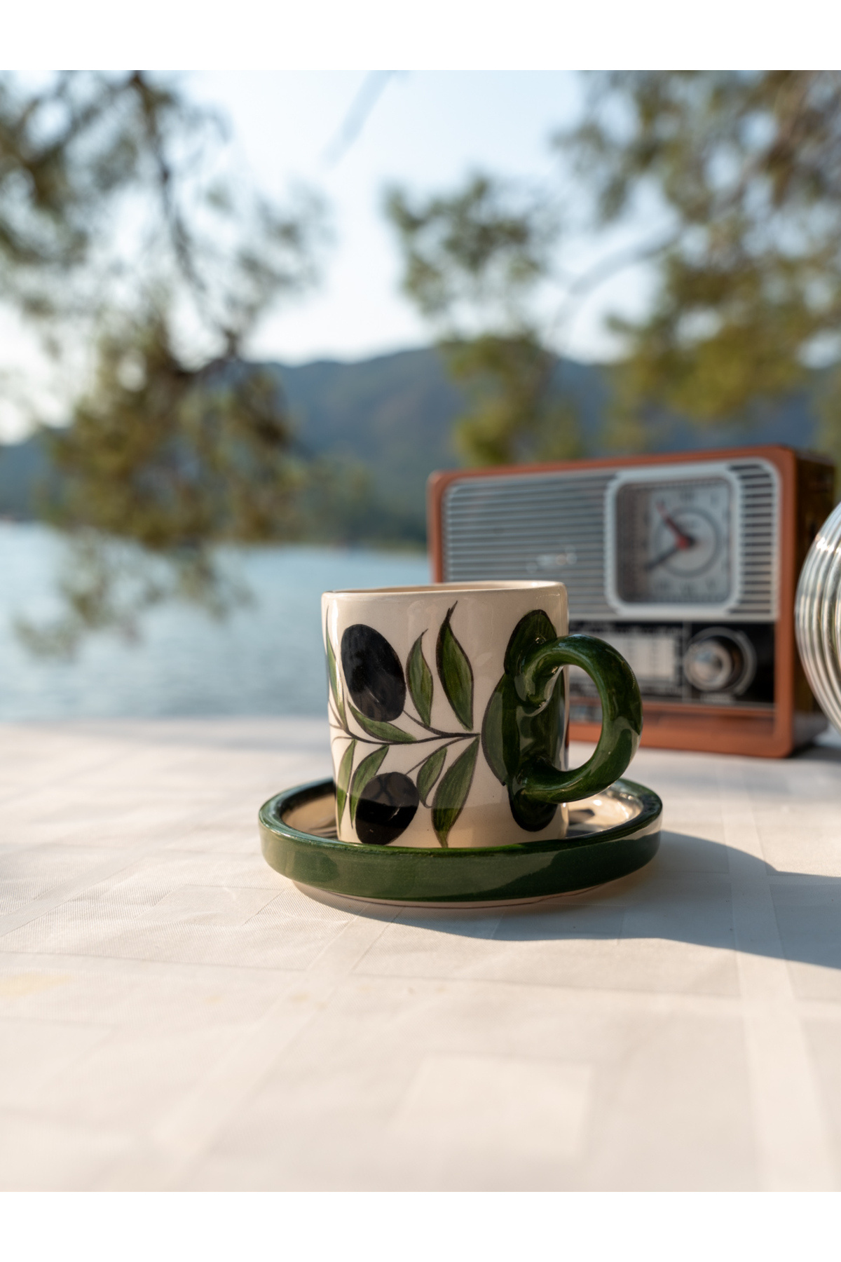 ميزات كوب قهوة اسبريسو من السيراميك مصنوع يدويًا بنمط زيتوني من shop
