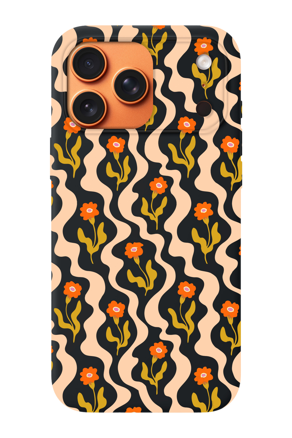 ميزات حافظة هاتف متوافقة مع iPhone 17 Pro مزينة بنمط أمواج الزهور من الداخل مصنوعة من جلد الغزال من shoptocase