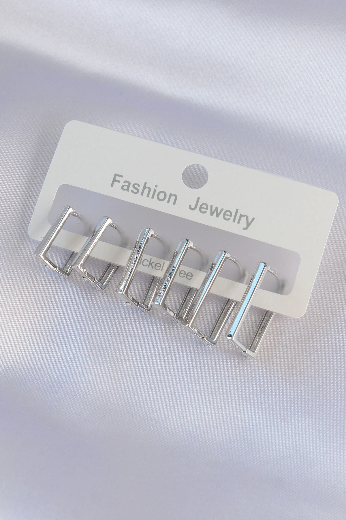 ميزات مجموعة أقراط نحاسية فضية اللون مستطيلة الشكل من shopwave