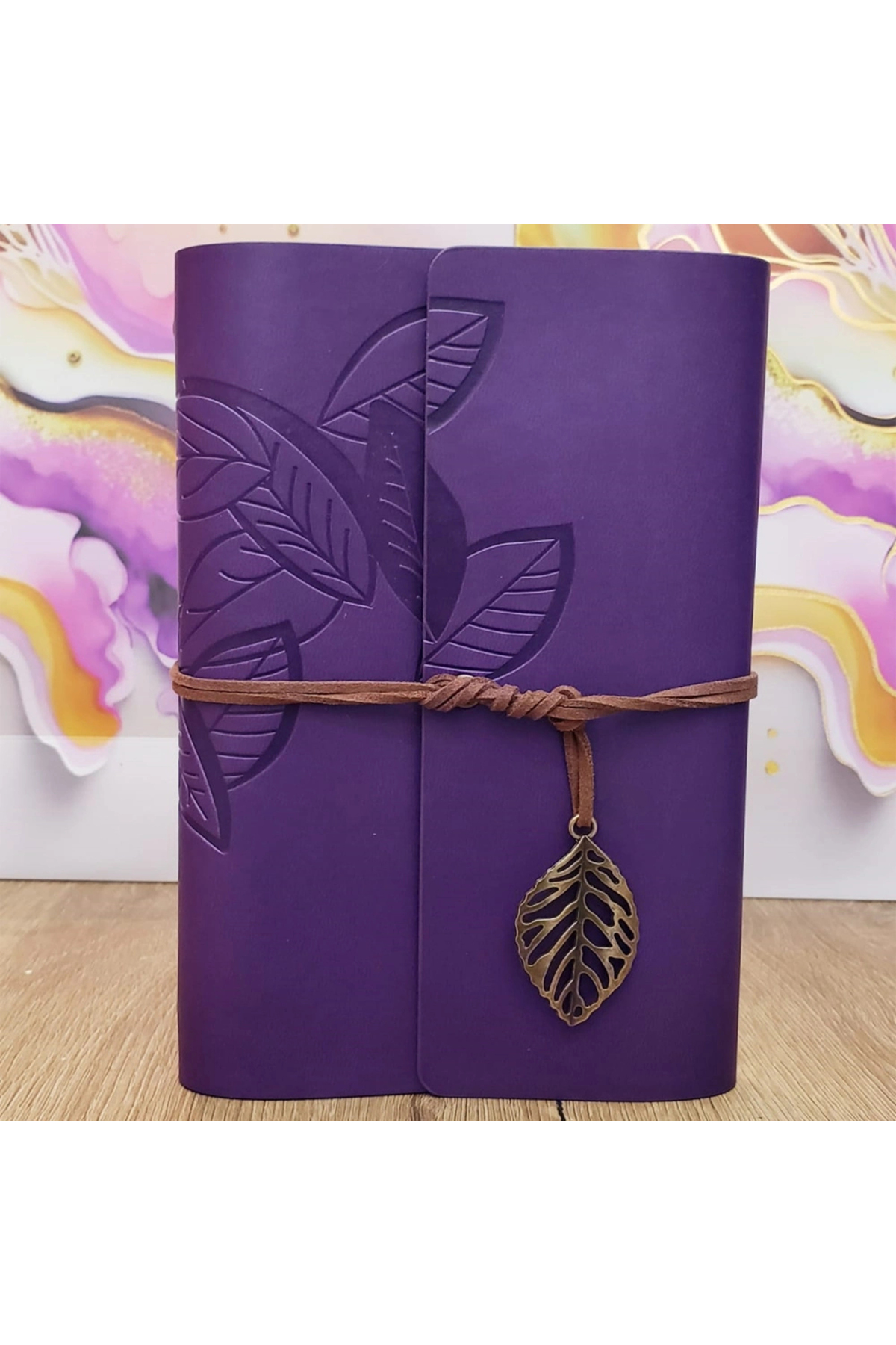 ميزات دفتر ملاحظات جلدي بدون خطوط بنمط أوراق الشجر باللون الأرجواني من shopwave