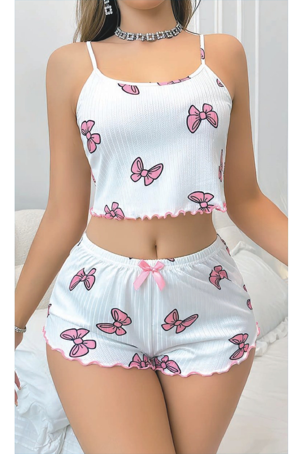 ميزات طقم شورت بنقشة الفيونكة – مجموعة عصرية بحمالات رفيعة من SİERNA