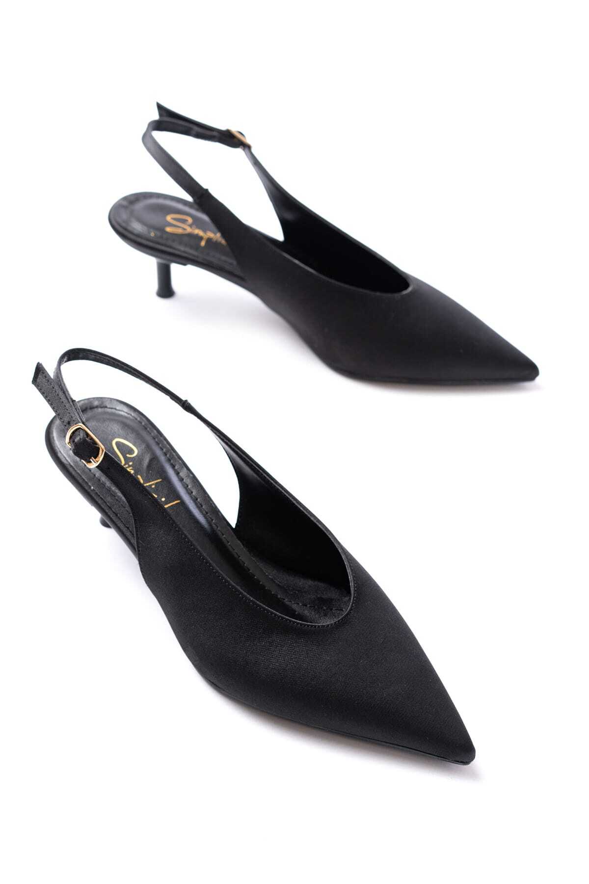 ميزات حذاء بكعب قصير من الساتان الأسود من simplicity