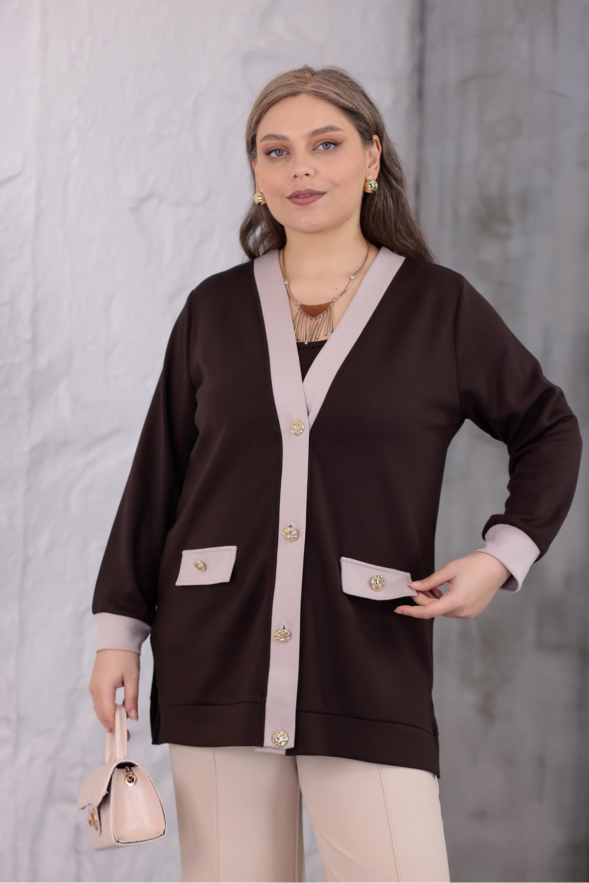 Siyezen سترة بأزرار مقاس كبير