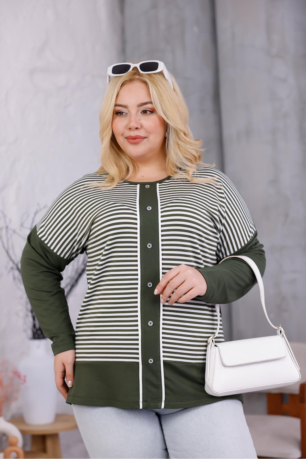 ميزات بلوزة مخططة بأزرار مقاس كبير من Siyezen