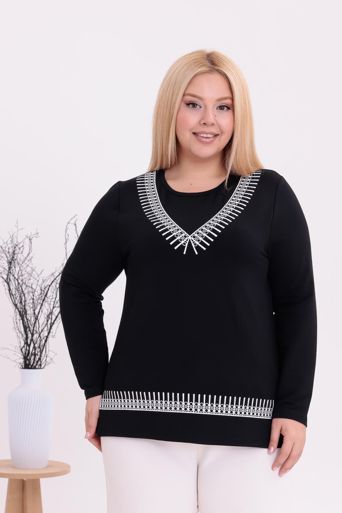 ميزات بلوزة منقوشة برقبة على شكل حرف V مقاس كبير من Siyezen