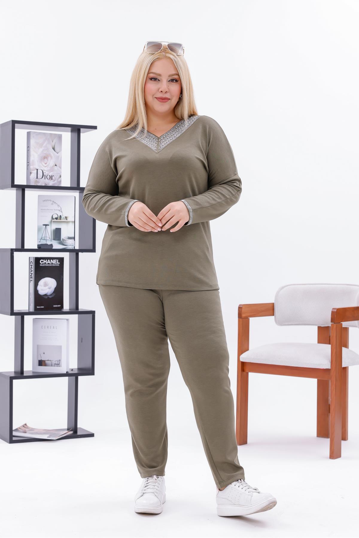 ميزات طقم مودال بياقة على شكل حرف V مقاس كبير من Siyezen