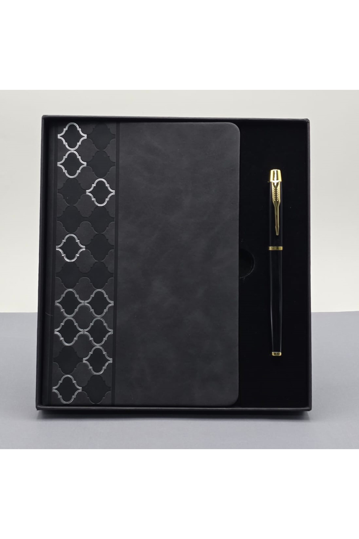 ميزات مجموعة أقلام دفتر ملاحظات من الجلد الأسود المنقوش من Skygo