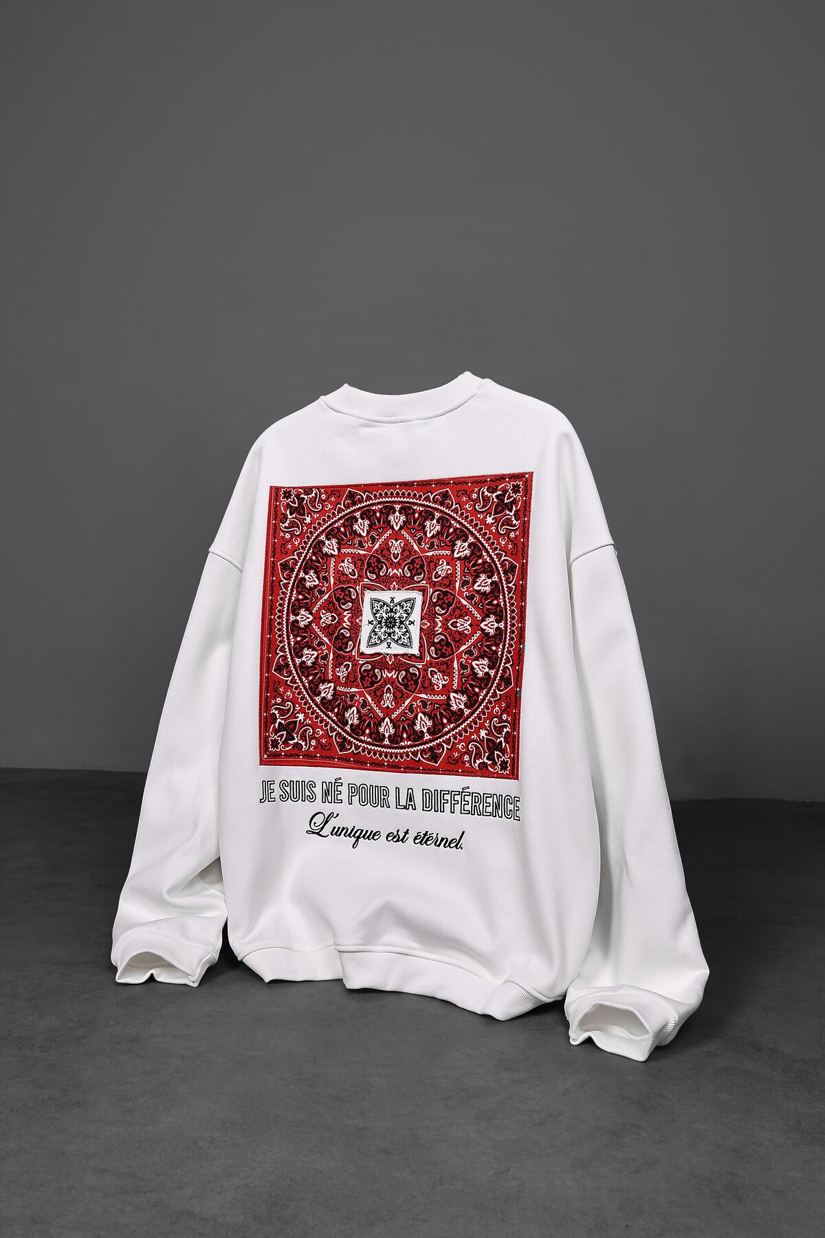 Slatra سويت شيرت رجالي أبيض بنمط الشال قصة فضفاضة
