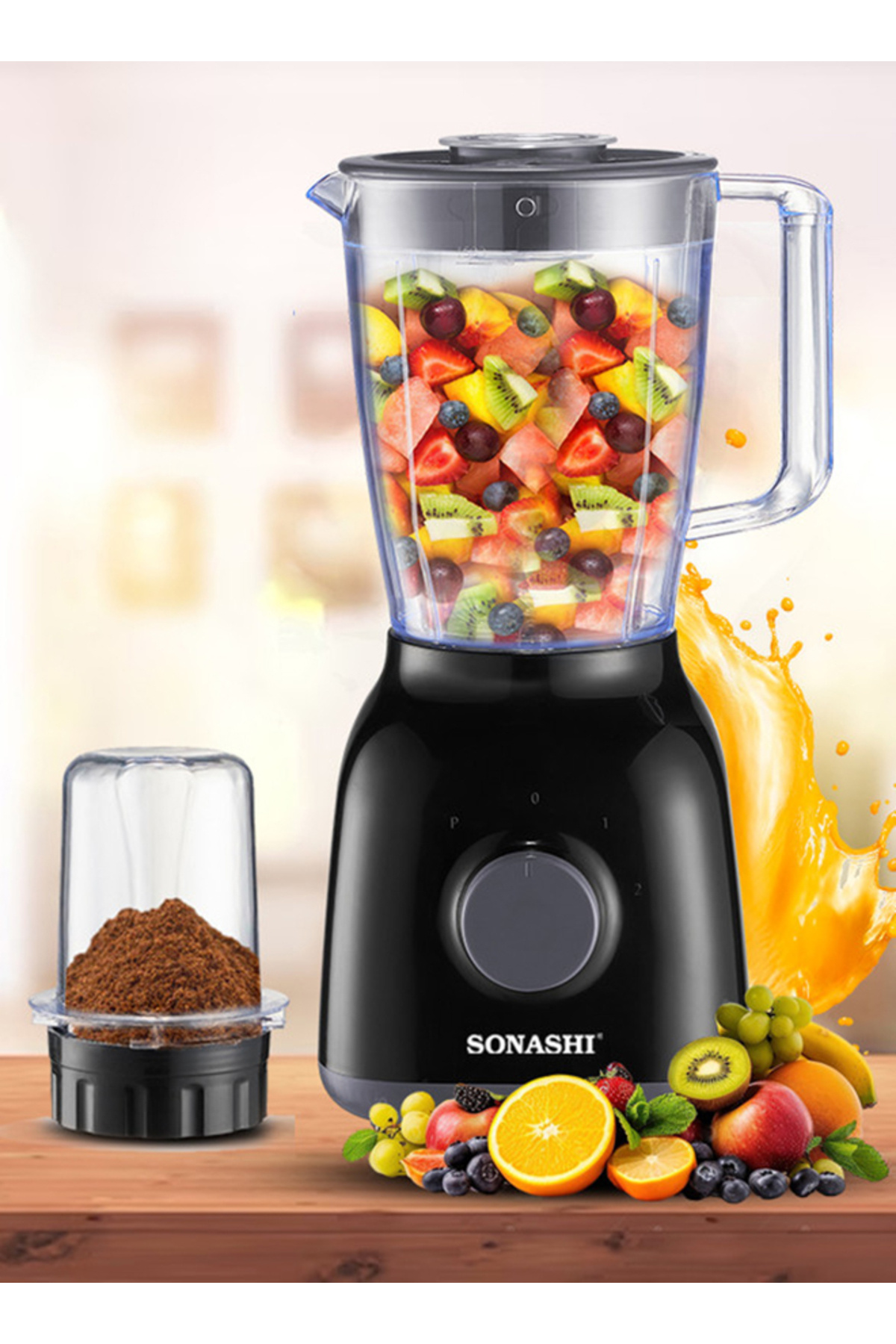 sonashi خلاط 2 في 1 مع إعدادين للسرعة ونبض - طحن التوابل، وصنع العصائر، والعصير، 650 واط