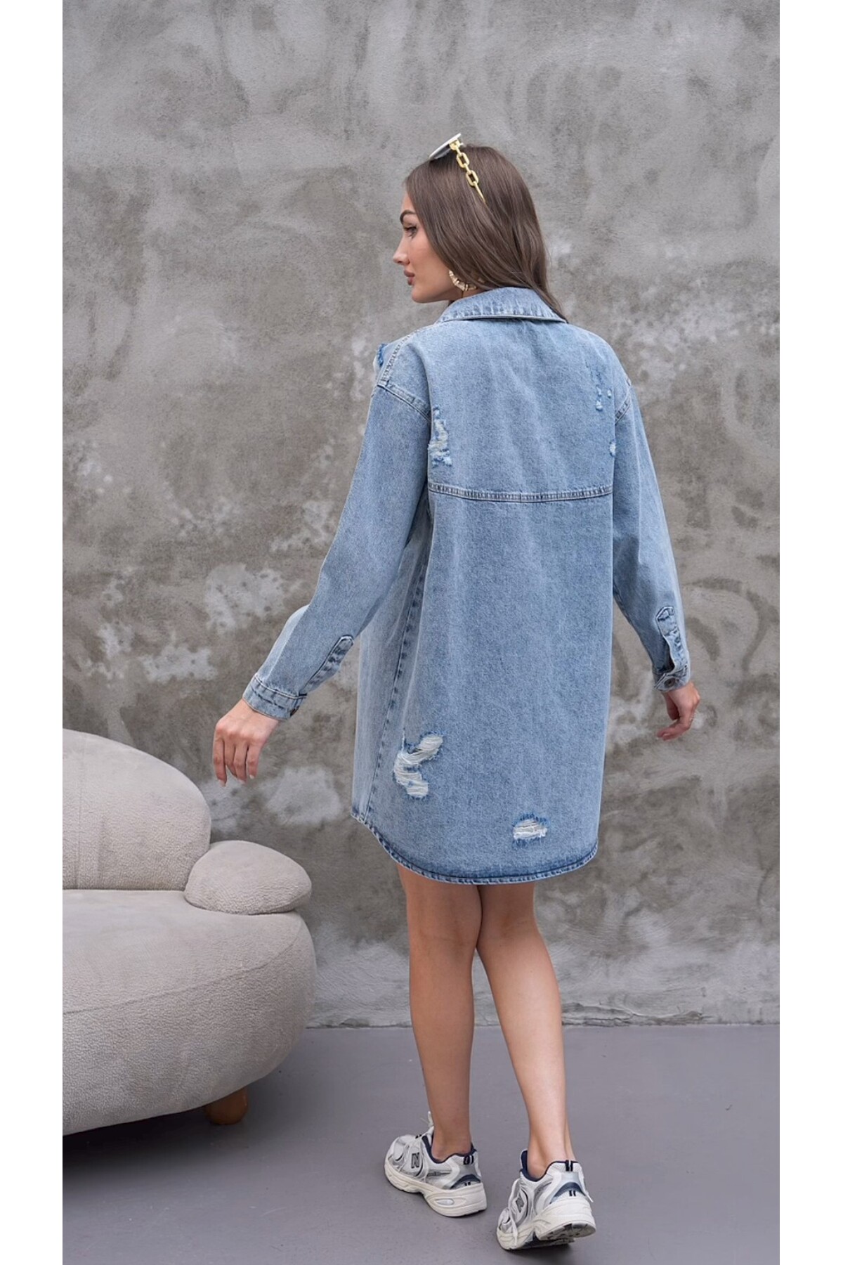ميزات سترة من الدنيم كبيرة الحجم بطبعة خلفية من sorisso
