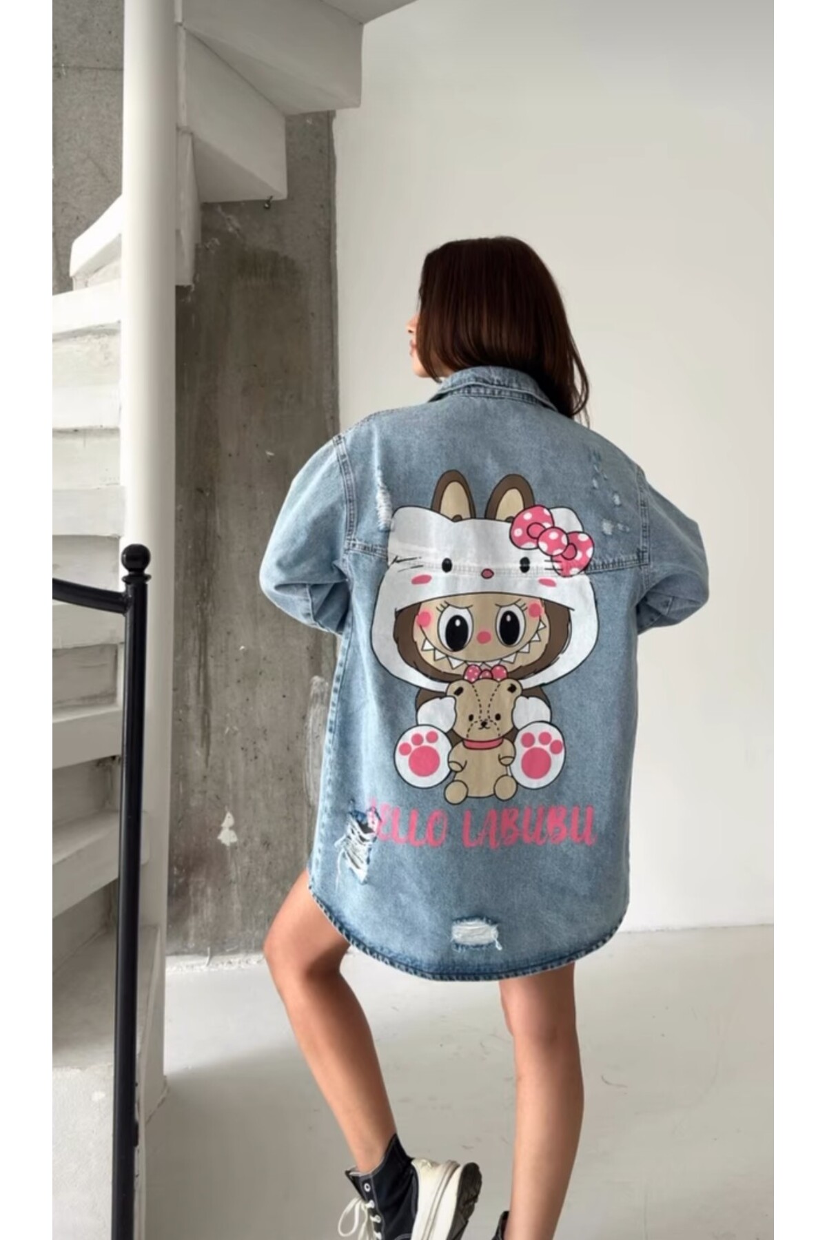ميزات سترة من الدنيم كبيرة الحجم بطبعة خلفية من sorisso