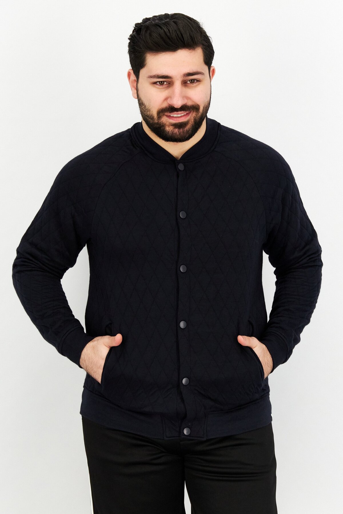 Sovereign Code سترة رجالي بنمط ماسي وياقة شريطية، أزرق داكن