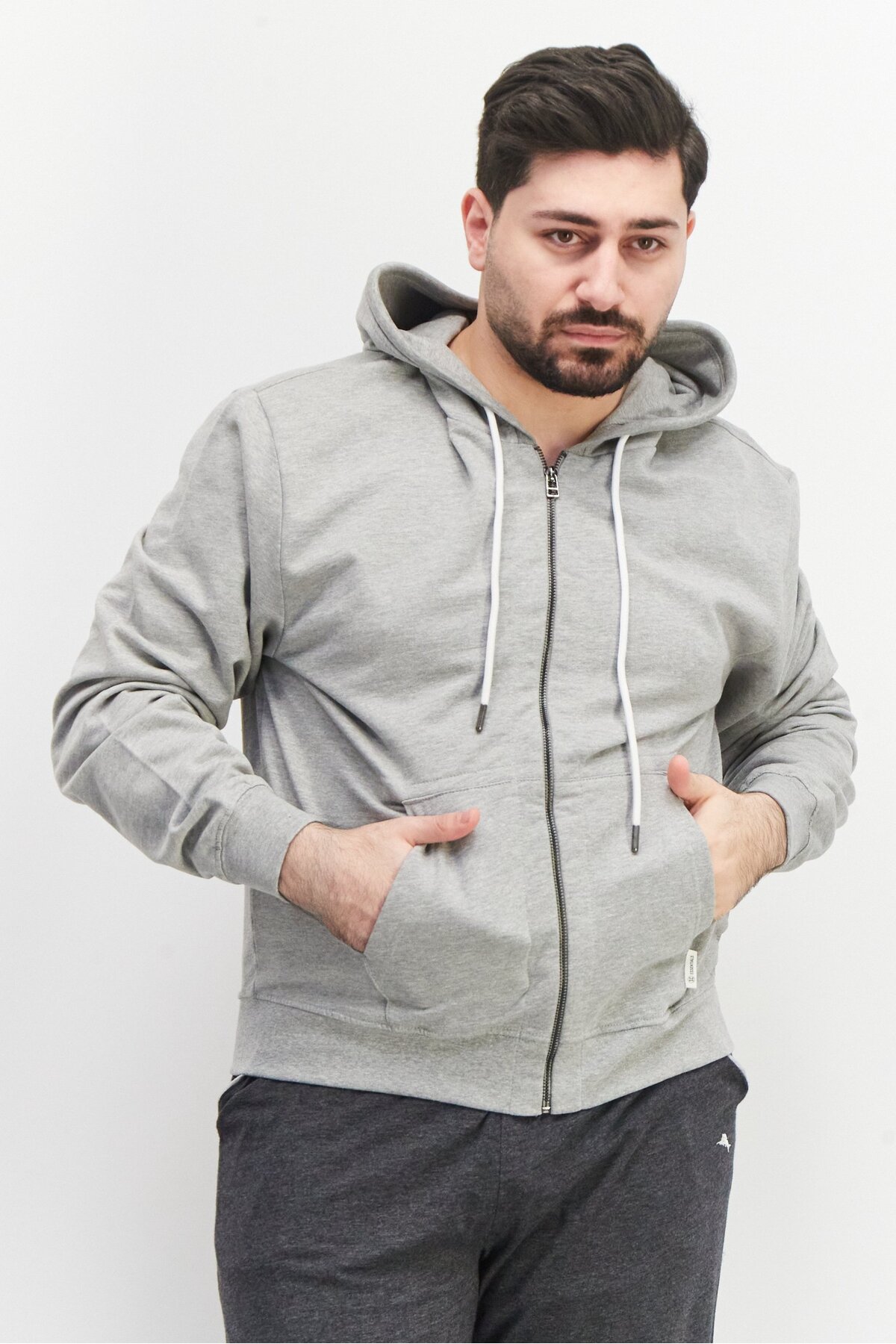 ميزات سويت شيرت رجالي بسحاب كامل، رمادي من Sovereign Code