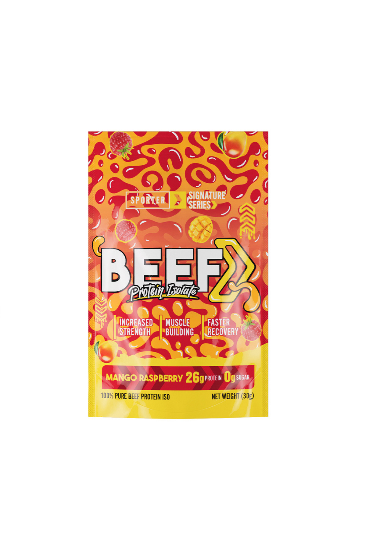 Sporter كيس بروتين لحم بقري معزول بنكهة التوت والمانجو، حصة واحدة