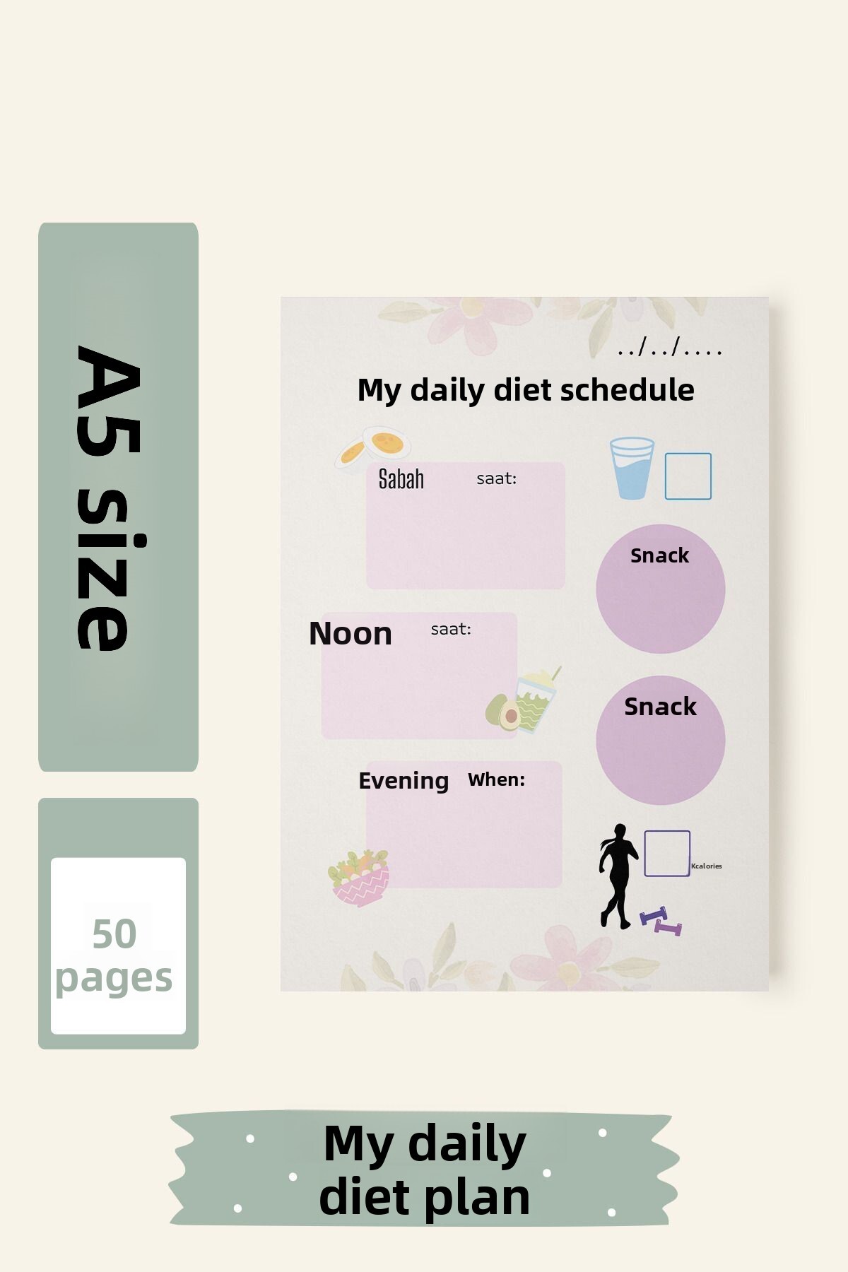 ميزات مخطط النظام الغذائي اليومي مقاس A5 50 ورقة من Srctech