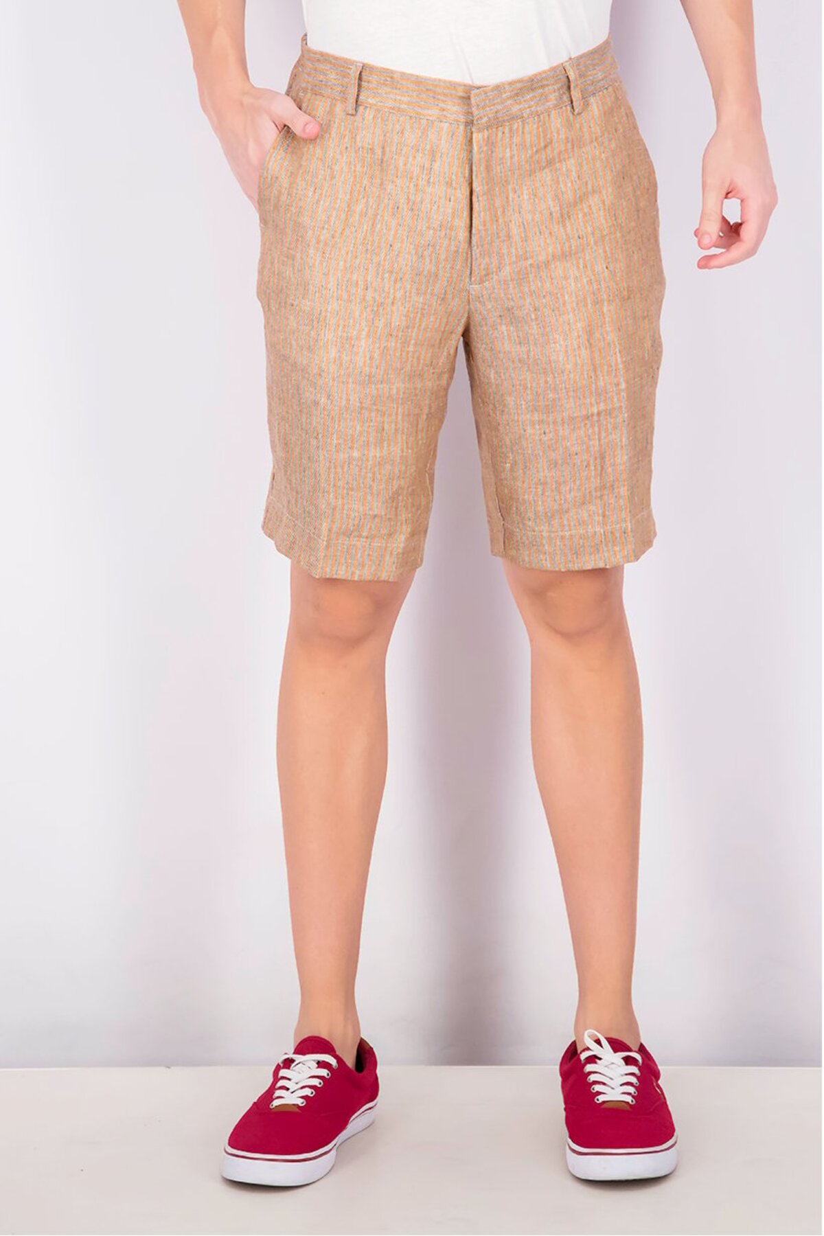 SSEINSE شورت رجالي مخطط أساسي، برتقالي ورمادي