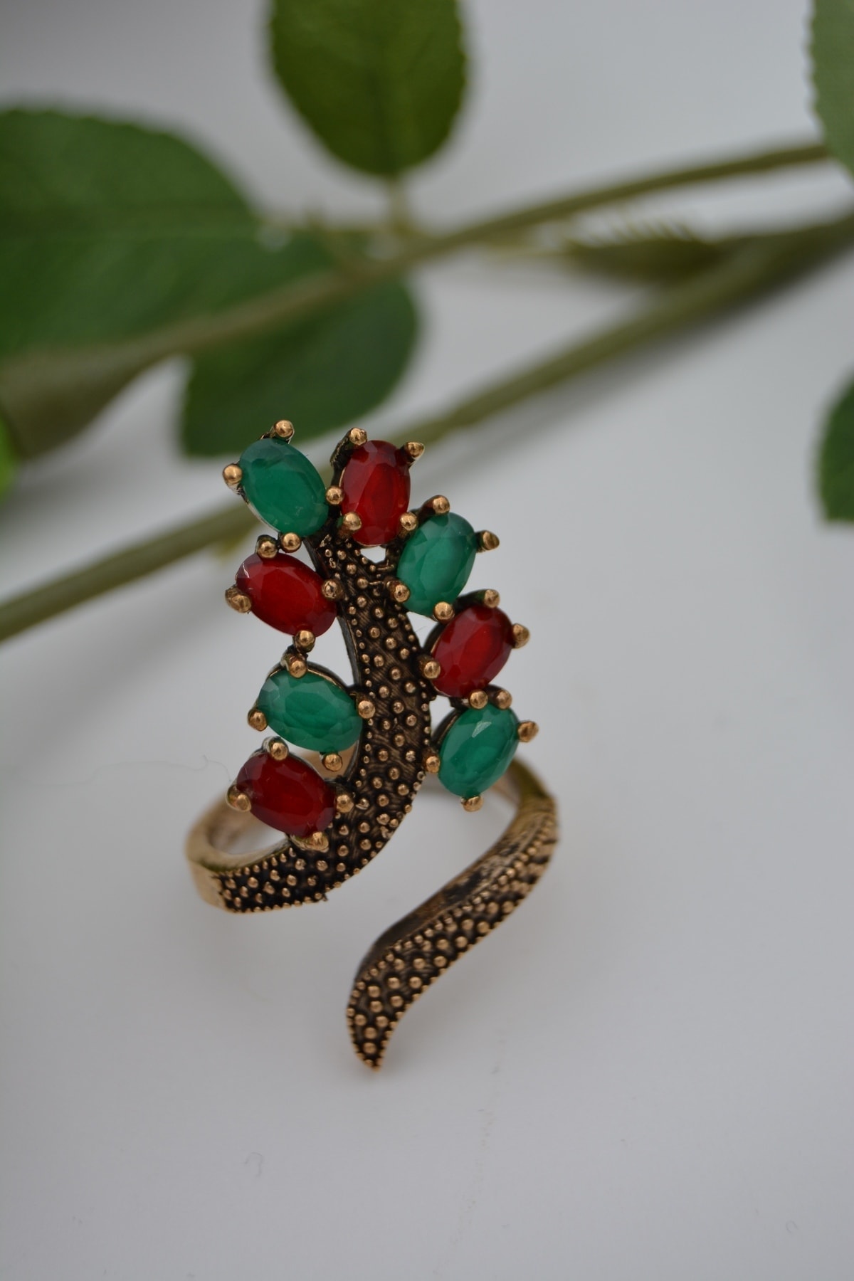 ميزات خاتم نسائي من حجر الياقوت والزمرد قابل للتعديل من Stoneage