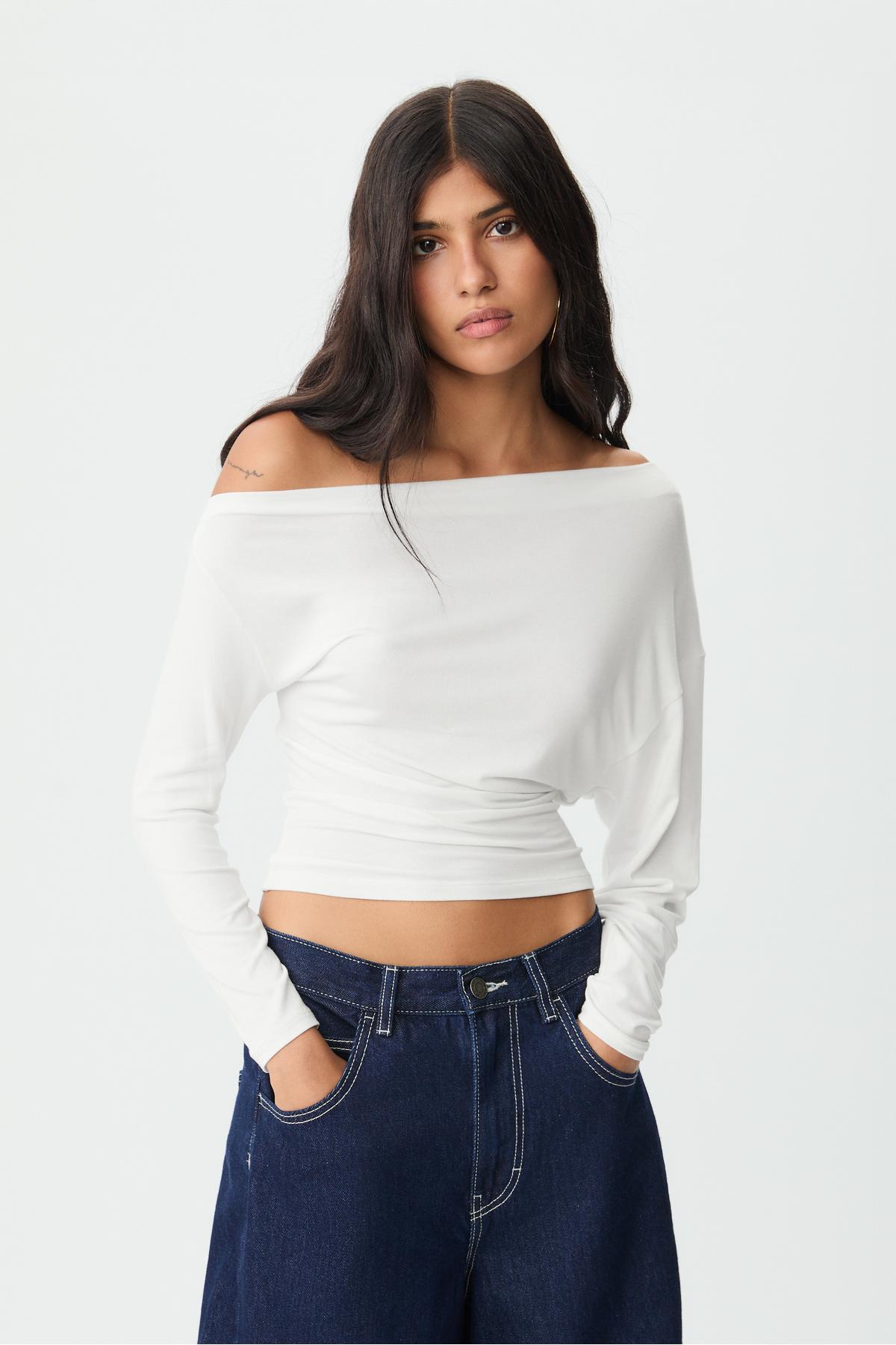 ميزات بلوزة بفتحة رقبة غير متماثلة من Stradivarius