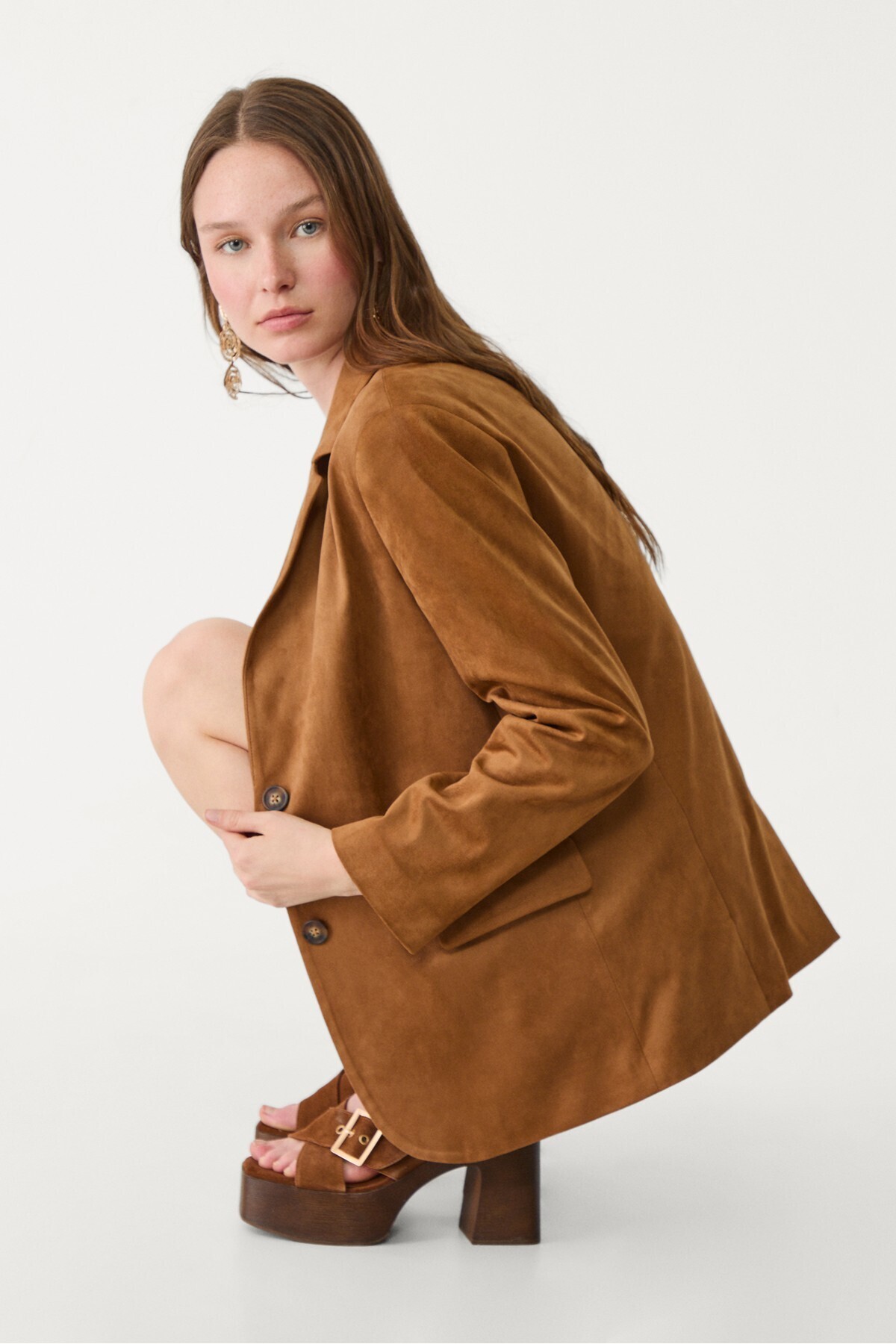 ميزات سترة من الجلد السويدي الصناعي من Stradivarius