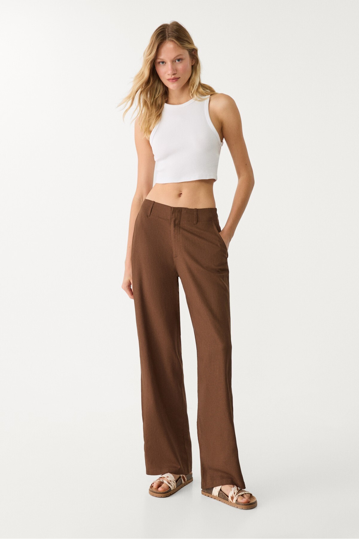 ميزات بنطلون مستقيم الساق من مزيج الكتان من Stradivarius