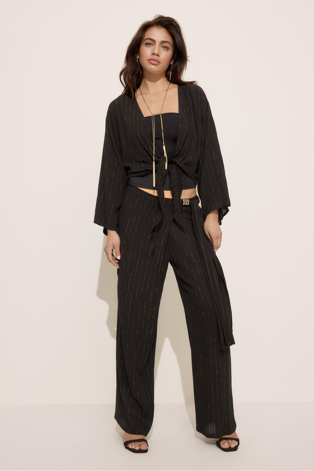 ميزات بنطلون من الخيوط المعدنية المتدفقة من Stradivarius