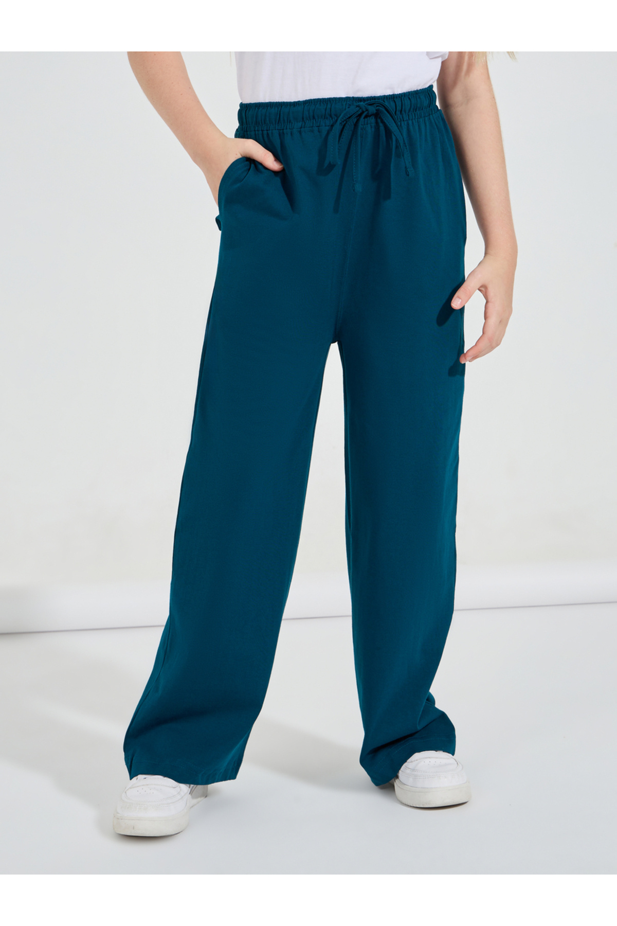 ميزات بنطلون أساسي واسع الساق مع رباط من Styli
