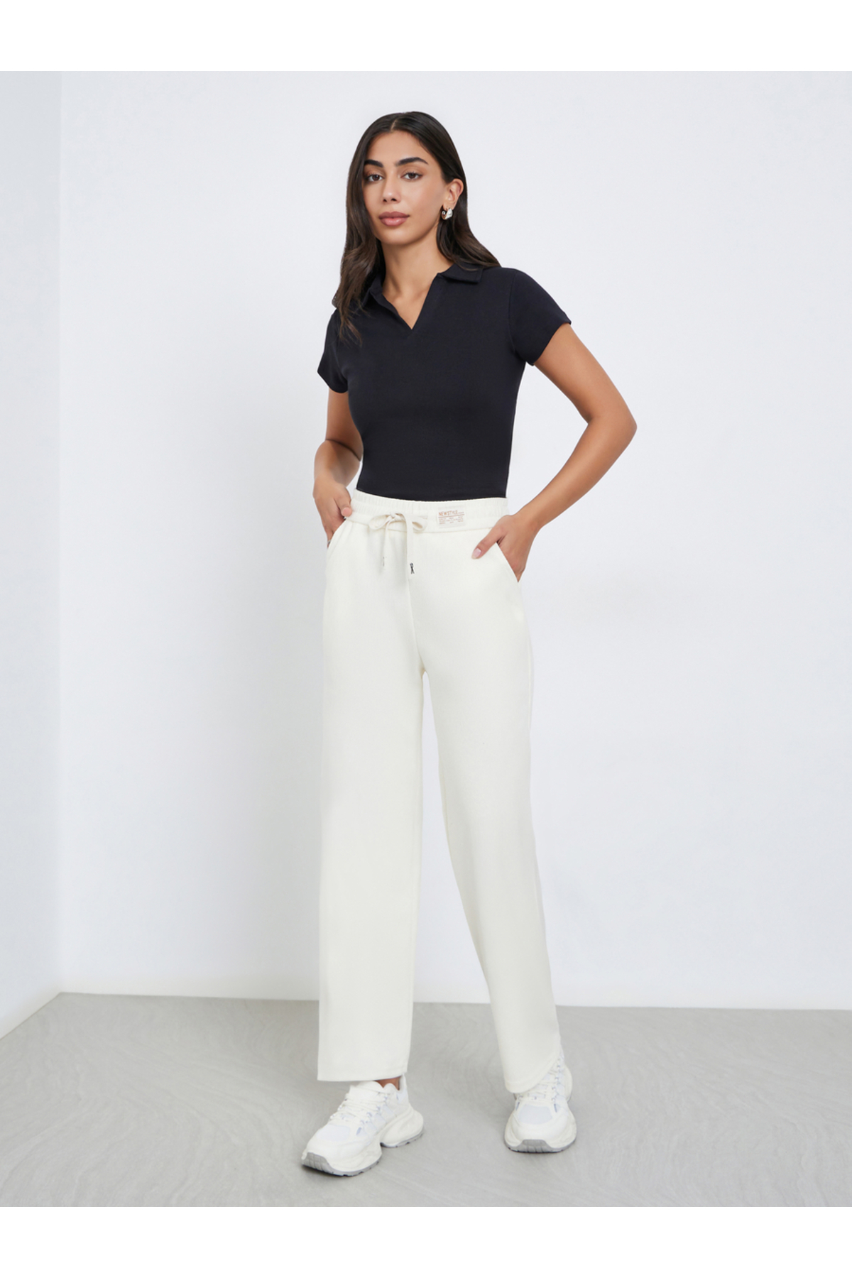 ميزات بنطال بيج سادة أرجل واسعة مع رباط من Styli