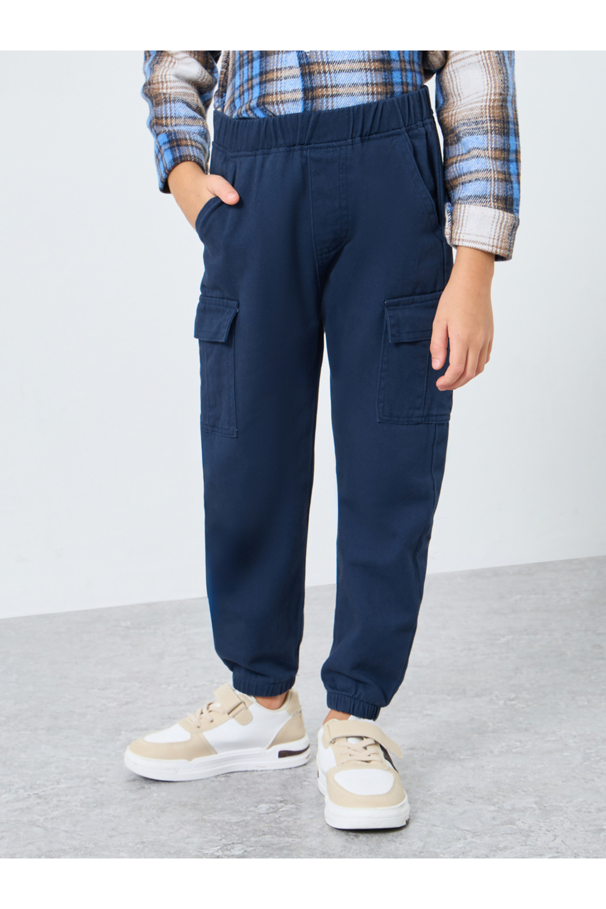Styli بنطال رياضي كارجو سادة باللون الأزرق البحري للأولاد